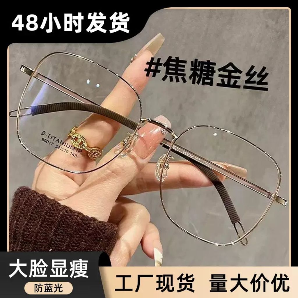 復古金絲邊平光眼鏡框架防藍光大框男女素顏大臉顯瘦男可配度數近視