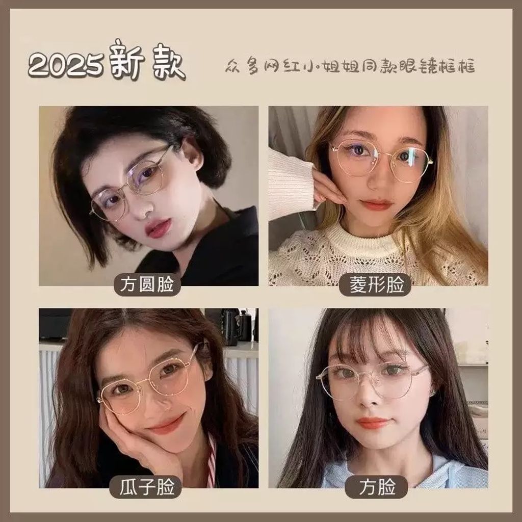 韓系顯白奶茶色眼鏡框女可搭配近視度數素顏文藝小圓框金絲眼睛鏡架